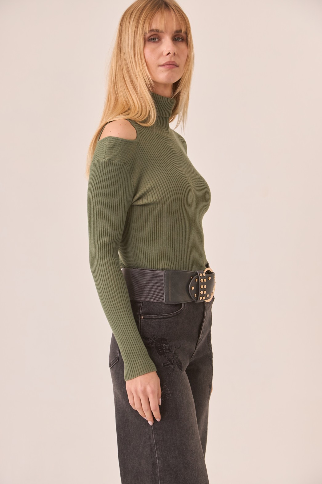 Jersey de Viscosa Cuello Alto y Cut Out En Hombro