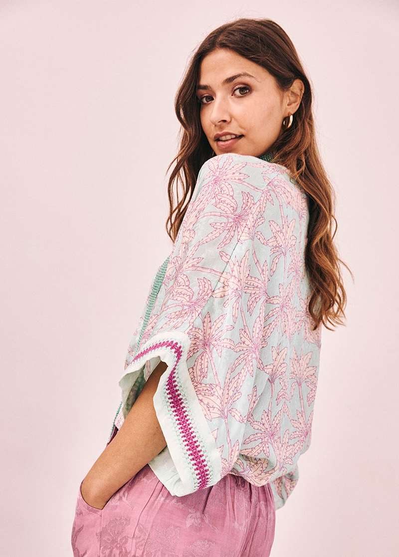Kimono estampado con detalle bordado