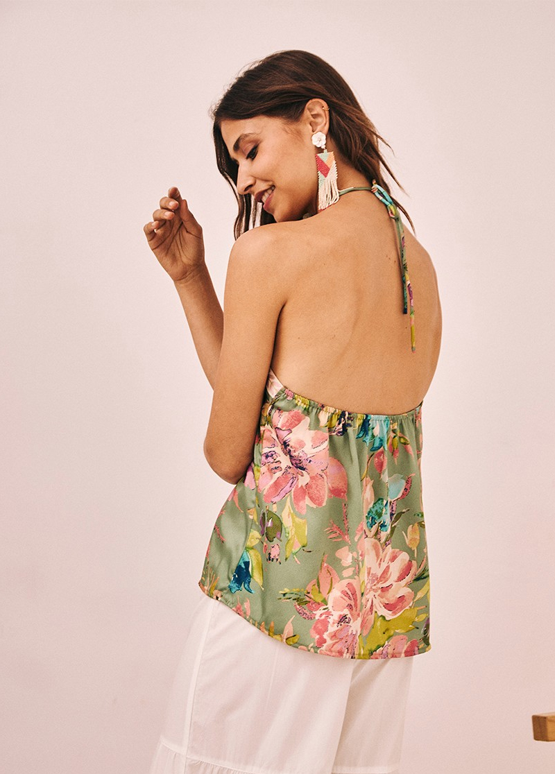 Top halter estampado con fornitura