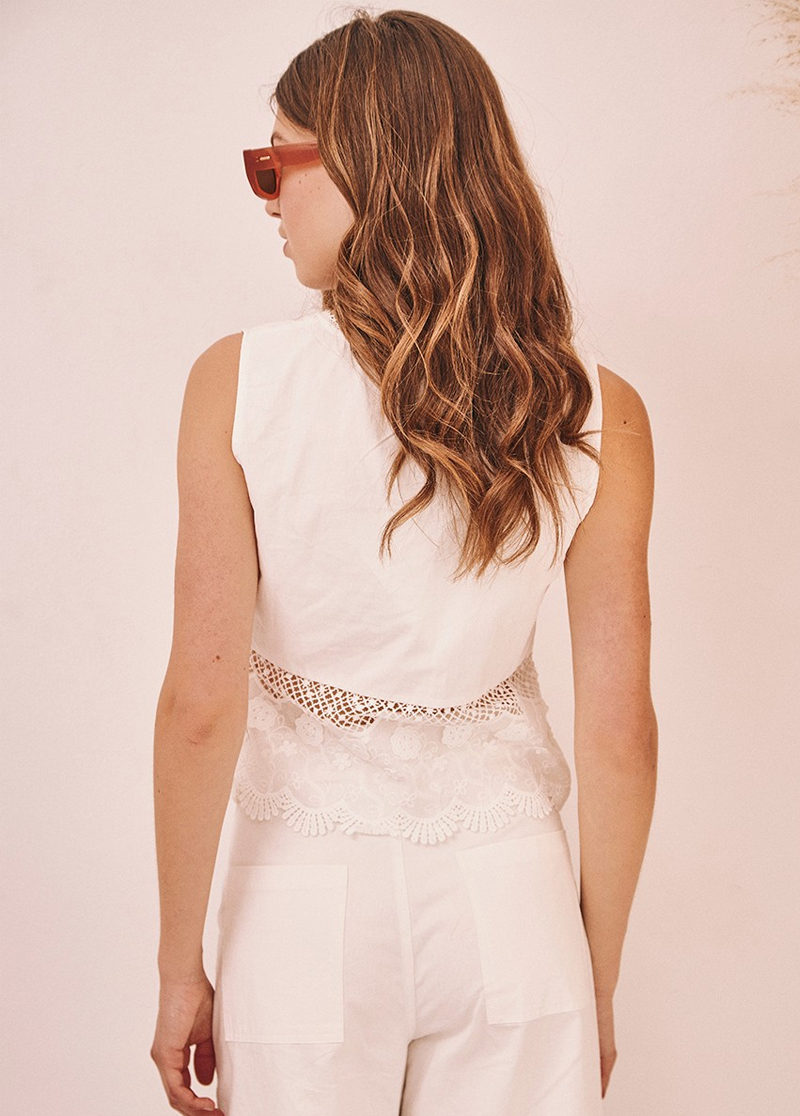 Top de algodón bordado con blonda en bajo