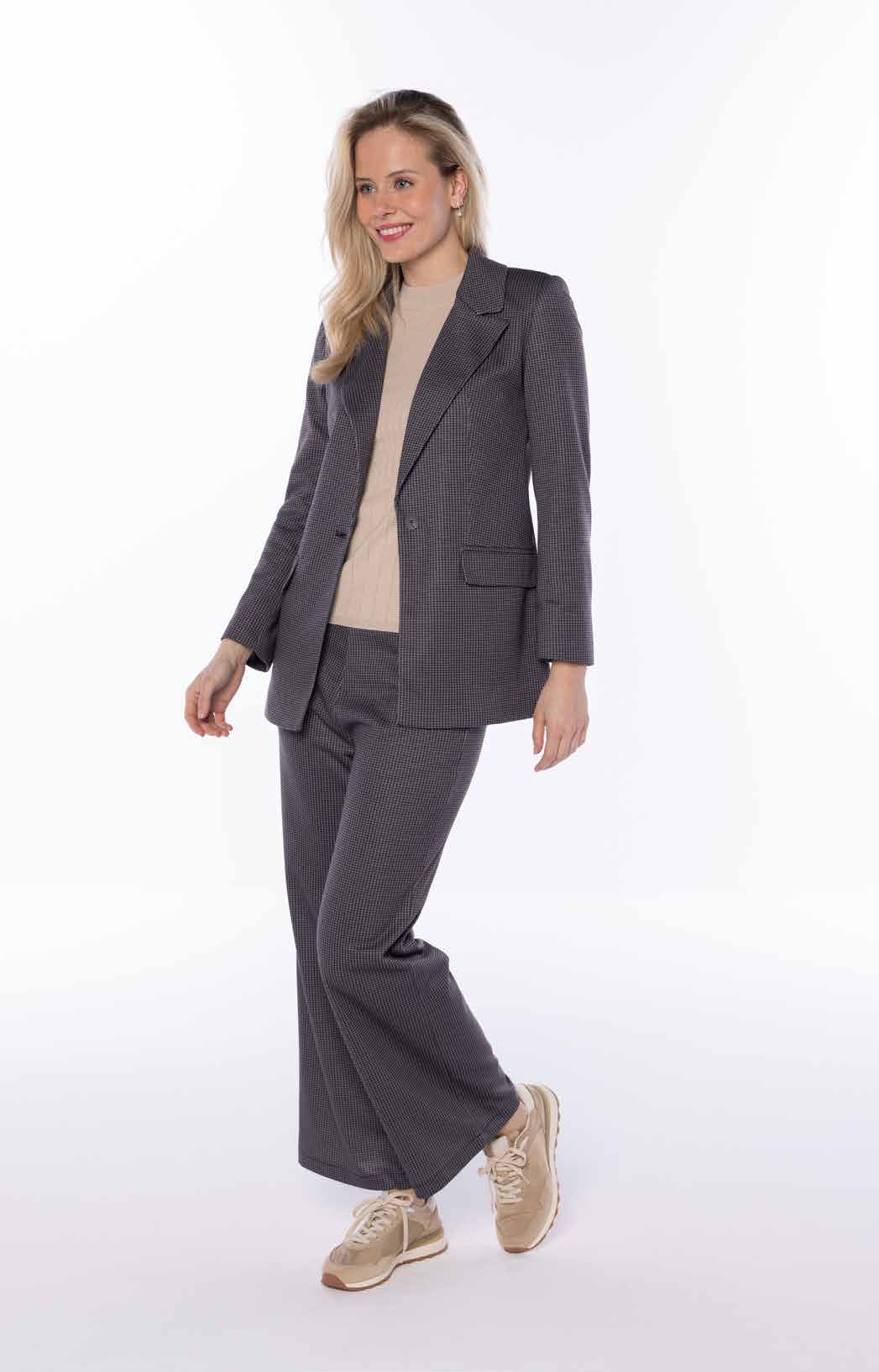 Americana de corte clásico con solapas de muesca, cierre frontal con un botón y bolsillos de solapa en los laterales. Su diseño estructurado realza la silueta sin perder comodidad, mientras que el tejido con dibujo aporta un aire sofisticado y versátil. Ideal tanto para combinar en un look de oficina como en un estilo más casual con vaqueros o pantalones de vestir.