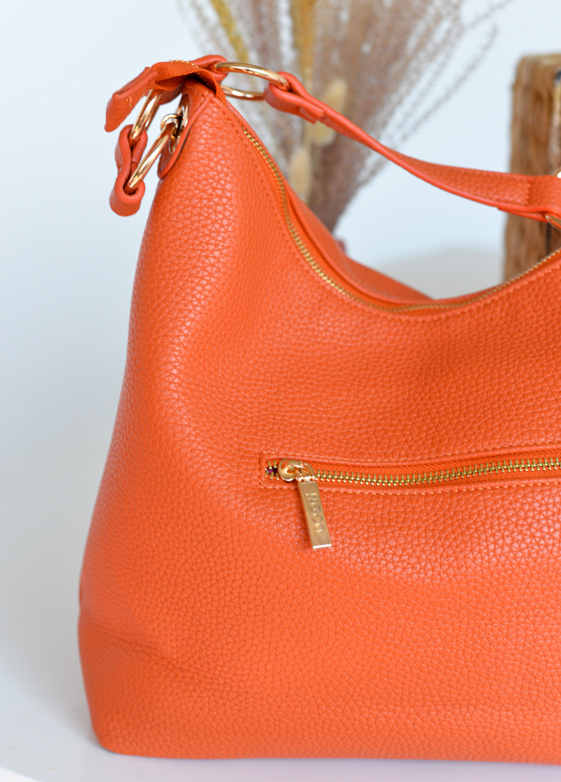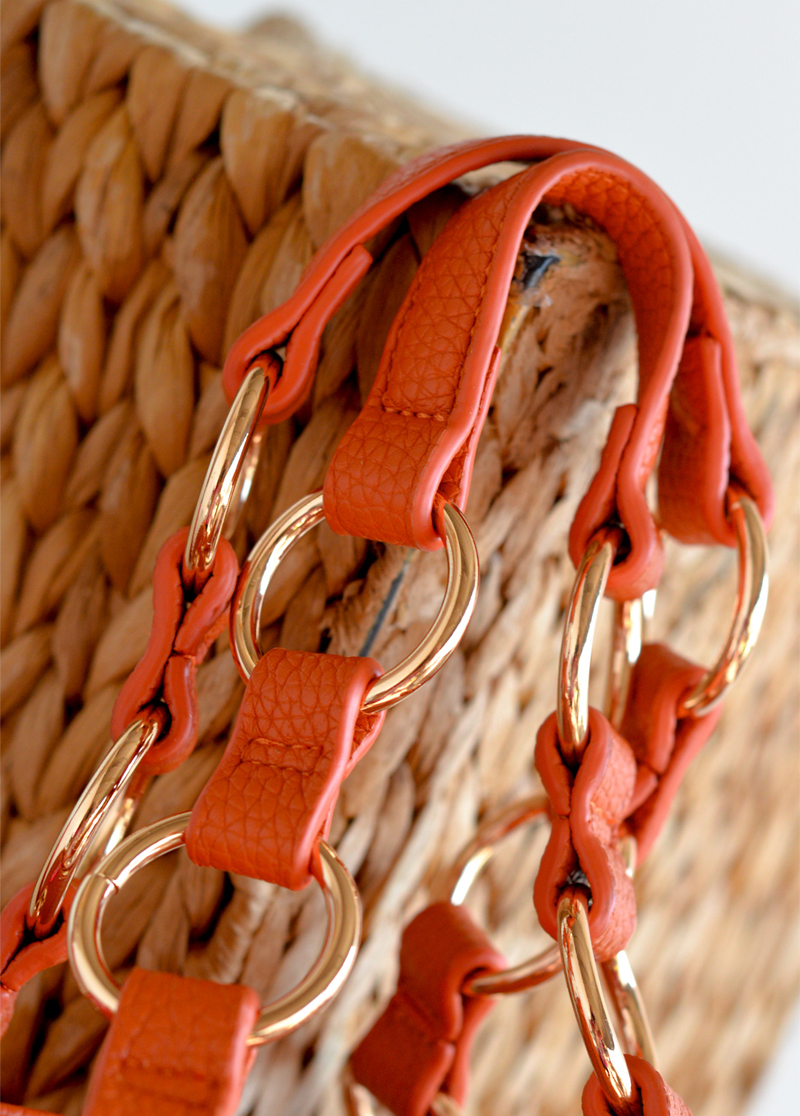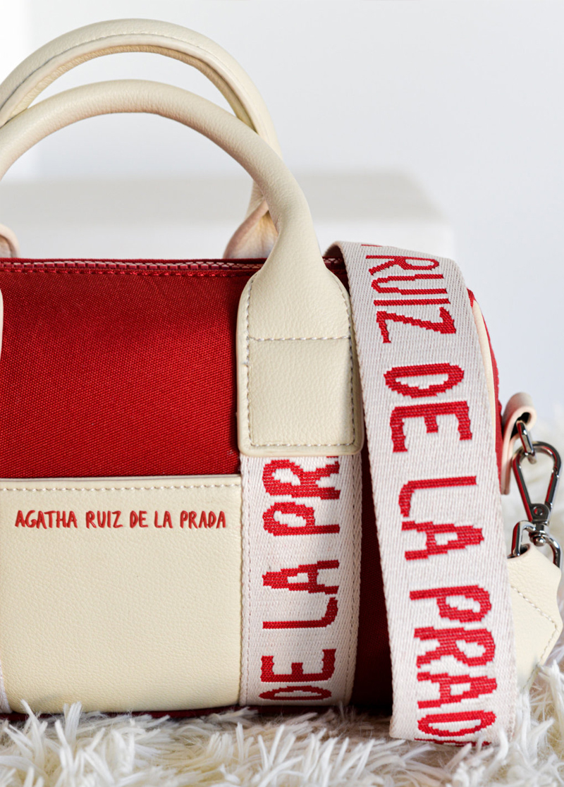 Bolso pequeño fabricado en algodón con hilos metalizados, con diseño estilo crochet y cierre tipo saco, bolsillos interiores, asa estilo bandolera en el mismo material y logo dorado.