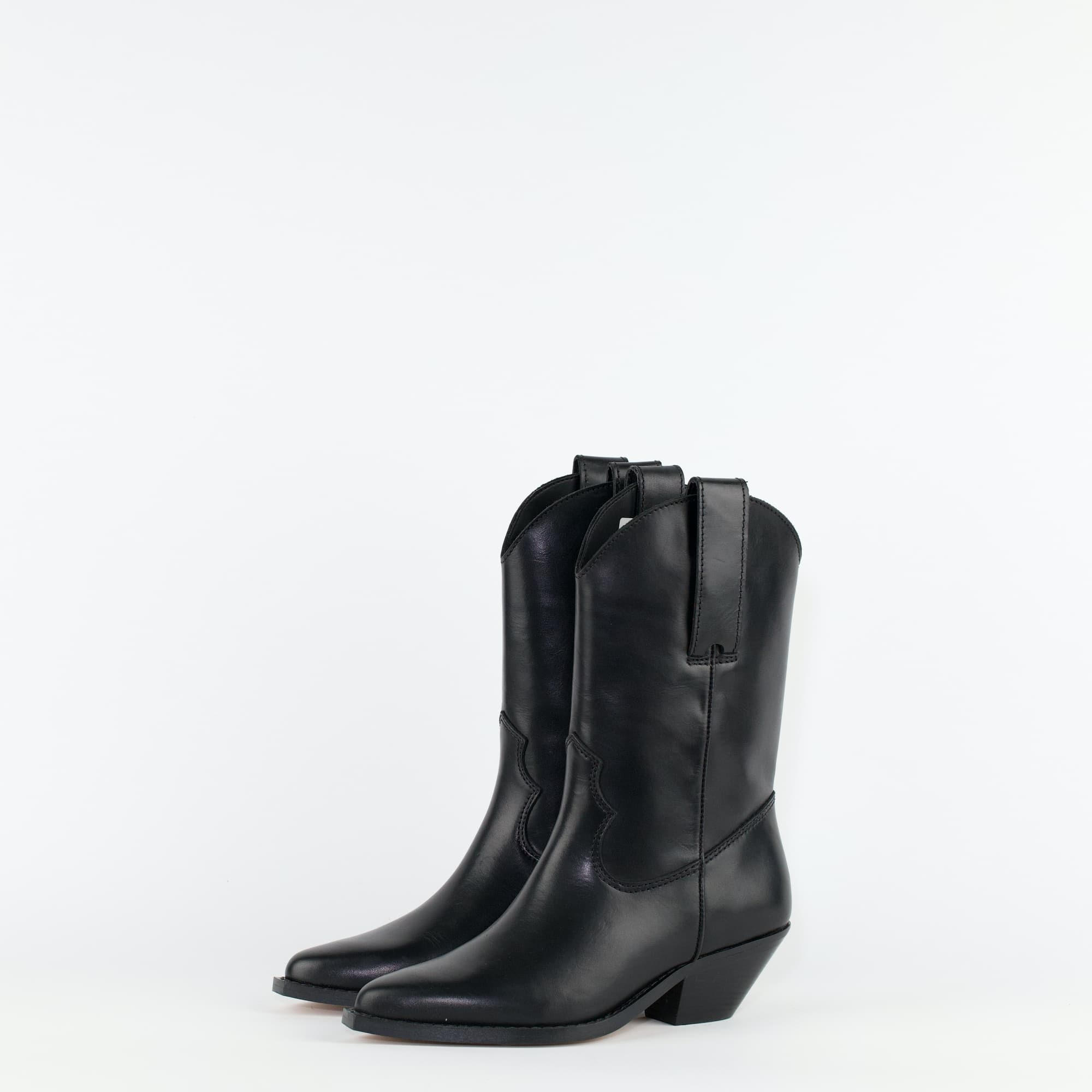 Esta bota destaca por su estilo inspirado en el diseño western, fusionando elegancia y carácter en una sola pieza. Su acabado suave al tacto aporta un aire sofisticado y versátil. Presenta un bordado decorativo que añade un toque artesanal y distintivo, mientras que su punta ligeramente en forma de almendra y el tacón bajo y ancho ofrecen comodidad y estabilidad al caminar. Ideal para combinar con atuendos casuales o más elaborados, esta bota es una elección estilosa que eleva cualquier look con un guiño sutil al estilo vaquero clásico.
