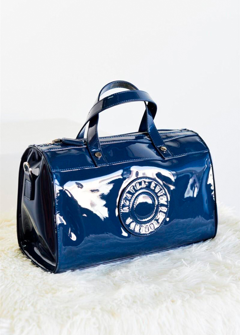Bolso de formato bowling Agatha Ruiz de la Prada diseñado en charol con logo de Agatha Ruiz de la Prada en el frente.