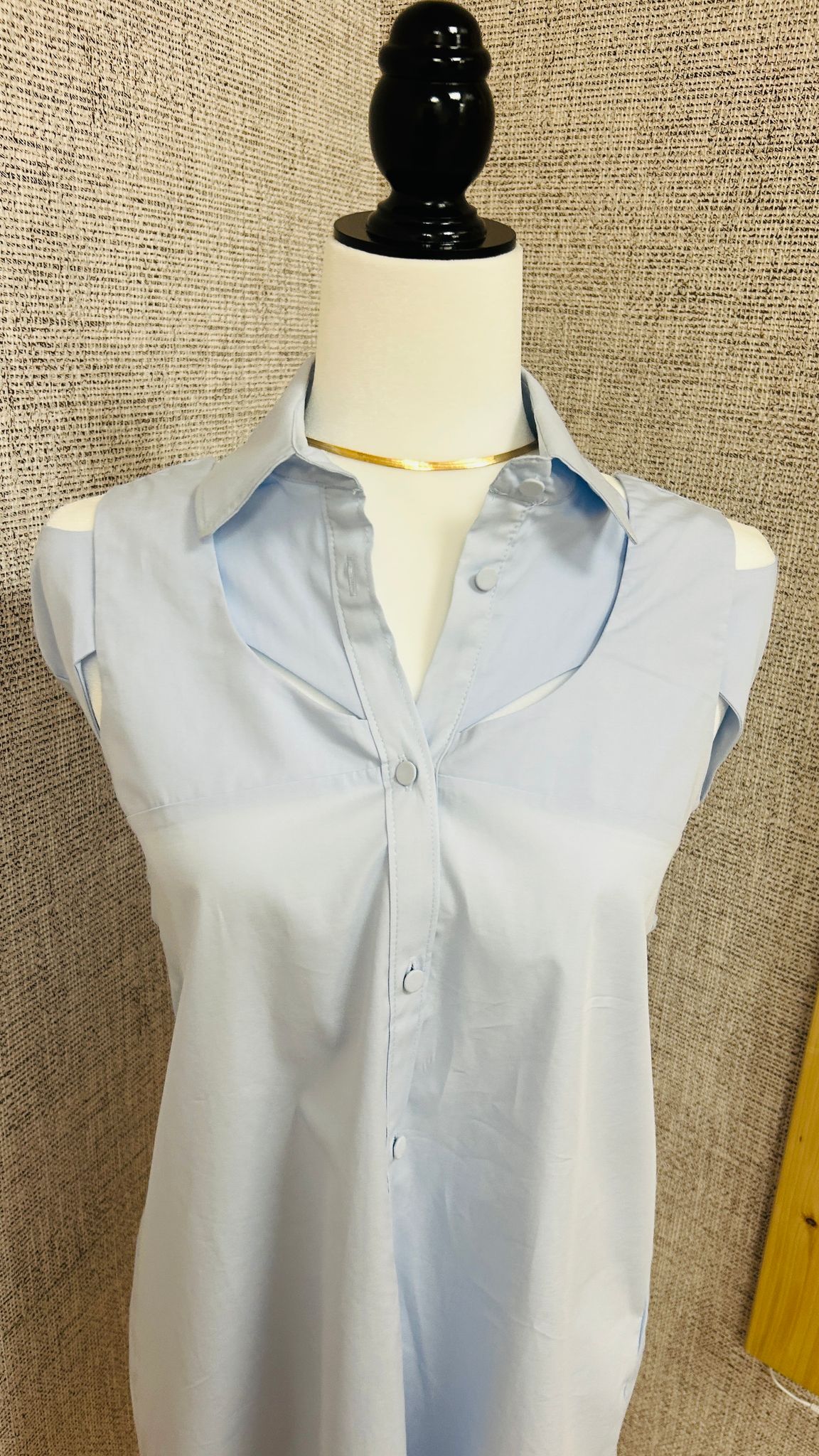 Blusa camisera azul claro. Confeccionada en un tejido ligero y cómodo, esta pieza destaca por su original diseño de hombros descubiertos que aporta un toque sofisticado y atrevido. Presenta cuello clásico, cierre frontal de botones y mangas largas con puño. Ideal para combinar con jeans o pantalones de vestir, esta blusa es perfecta para ocasiones casuales o semi-formales.