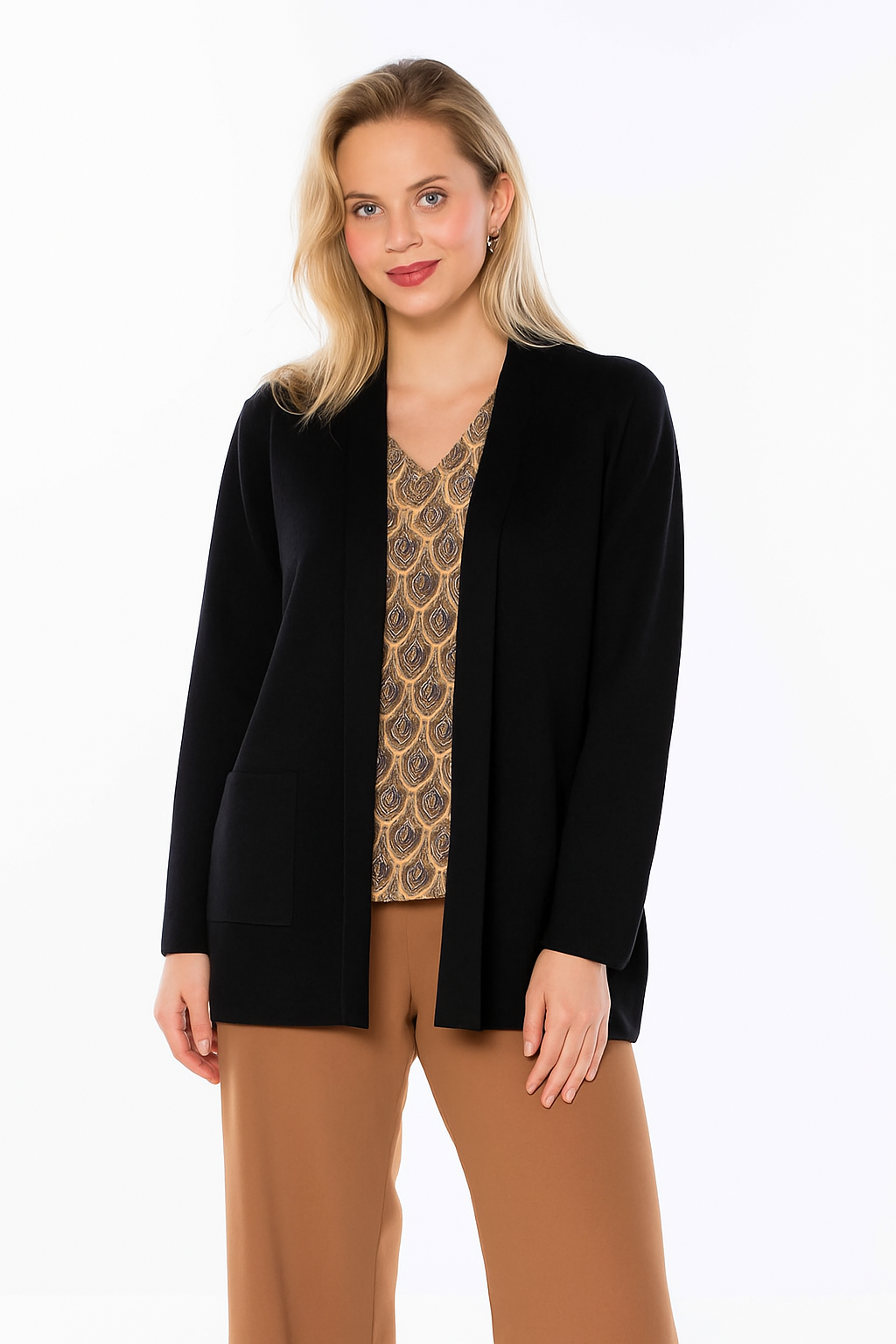 La prenda es una pashmina de diseño artístico, con un tejido suave y ligero que se adapta cómodamente al cuerpo. Presenta un patrón elegante con motivos florales y detalles decorativos que le otorgan un estilo sofisticado y versátil. Su confección permite llevarla de diferentes maneras, ya sea sobre los hombros o como accesorio envolvente. Es de talla única, ideal para complementar cualquier atuendo con un toque distintivo y refinado.
