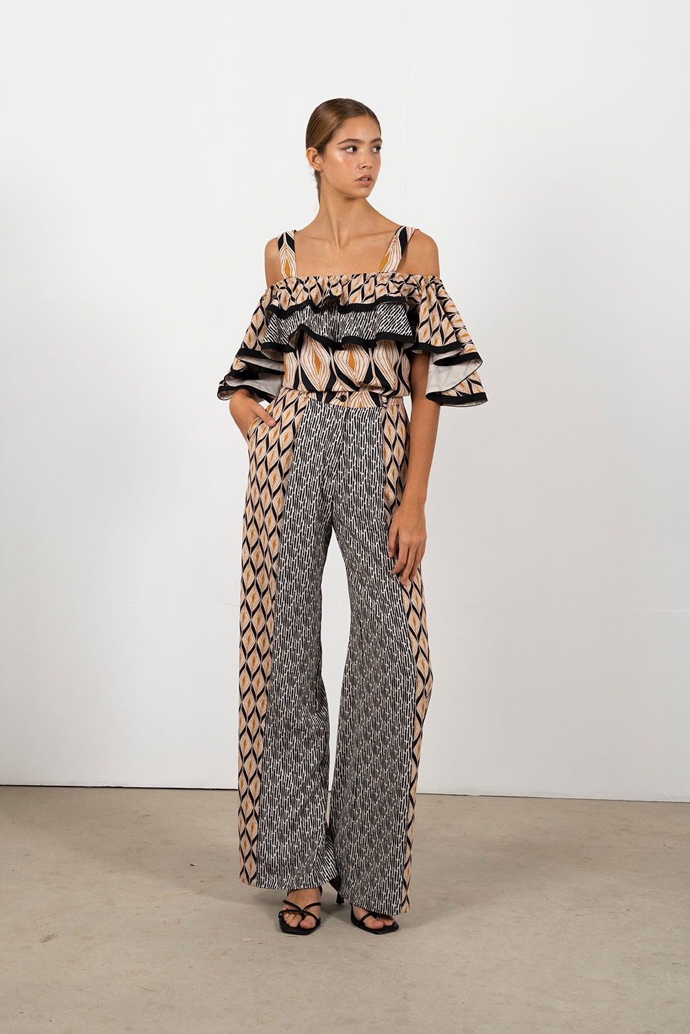 Nuestro pantalón de doble estampado, la pieza que transformará tu look diario en una declaración de estilo. Con pinzas que definen la silueta y prácticos bolsillos laterales, este pantalón combina funcionalidad y moda sin esfuerzo.