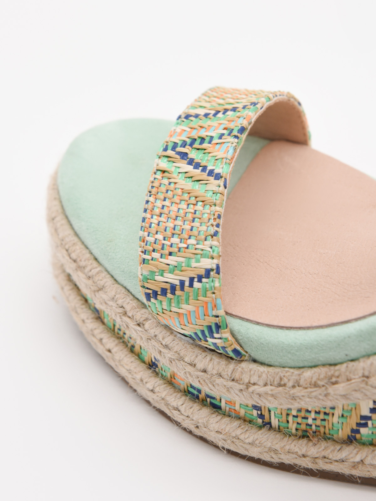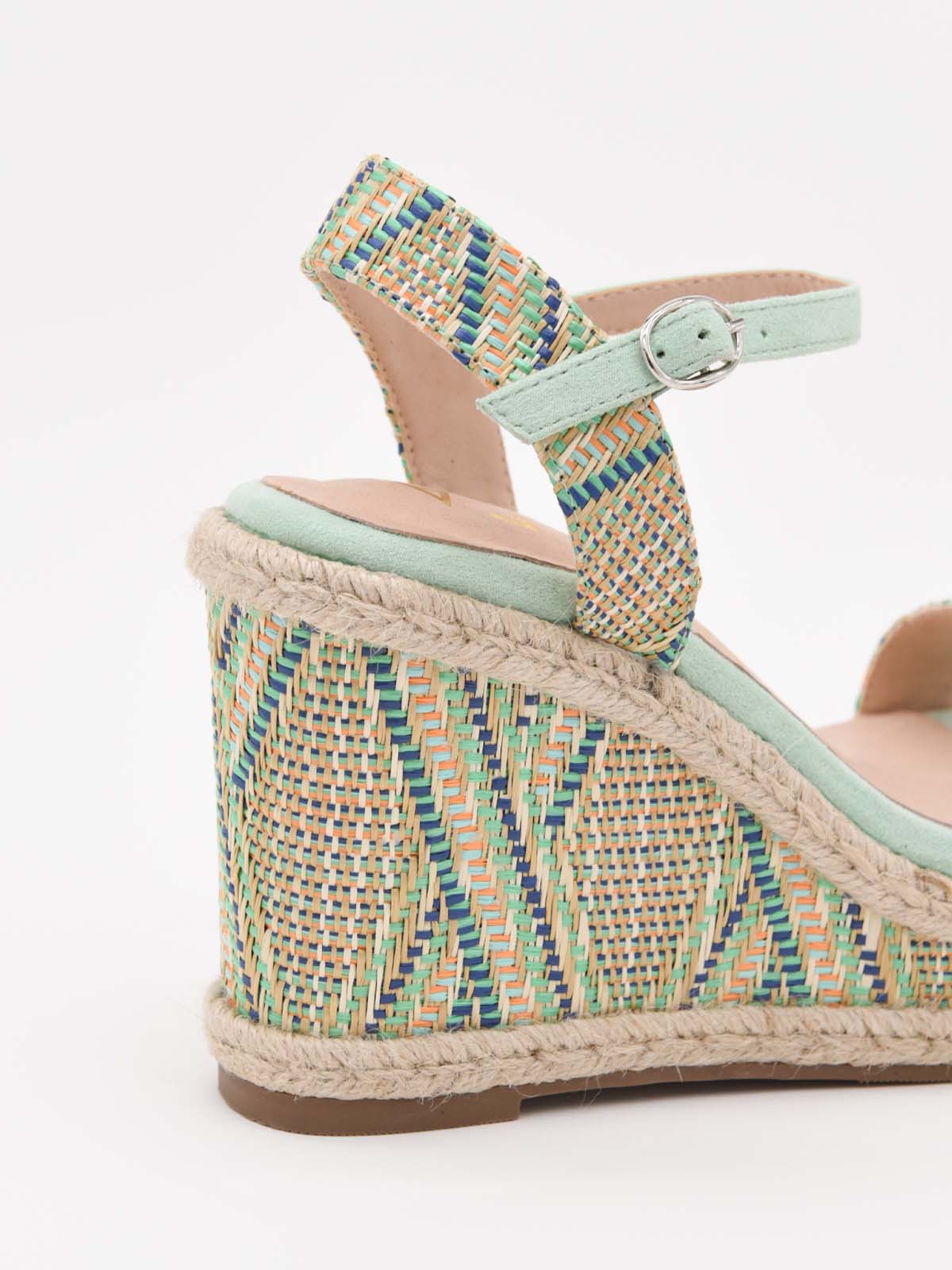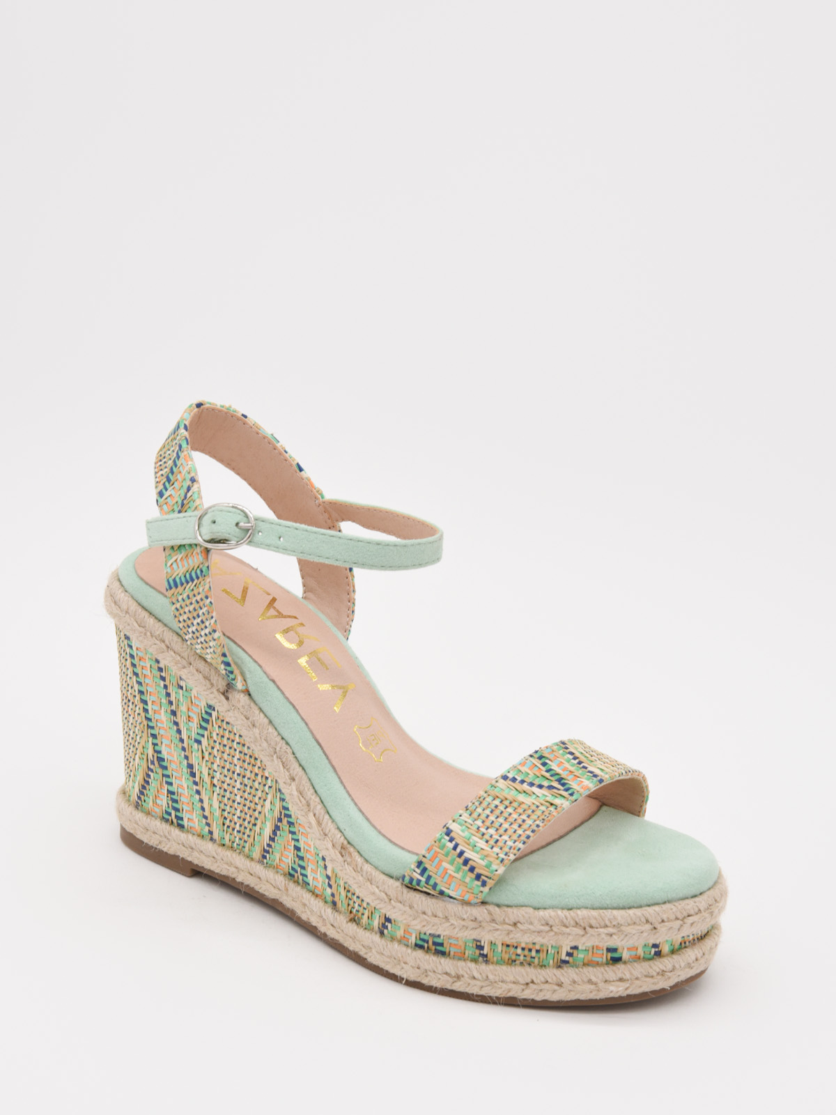 Estas sandalias de cuña verde multicolor combinan un diseño fresco y vibrante con una comodidad excepcional. Su plataforma alta asegura estabilidad y estilo, mientras que los detalles multicolor añaden un toque divertido y moderno.
