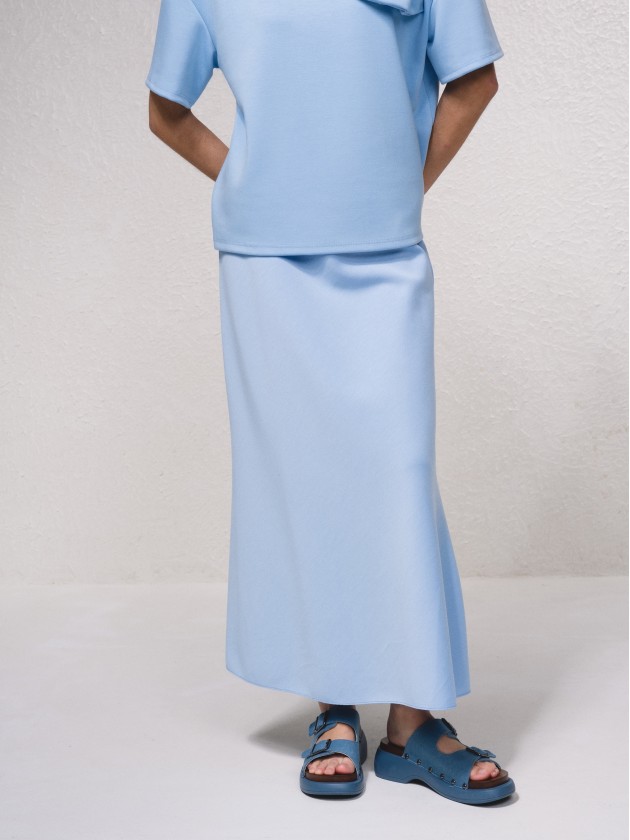 Corte: Largo, recto y fluido, con caída suave hasta el tobillo.