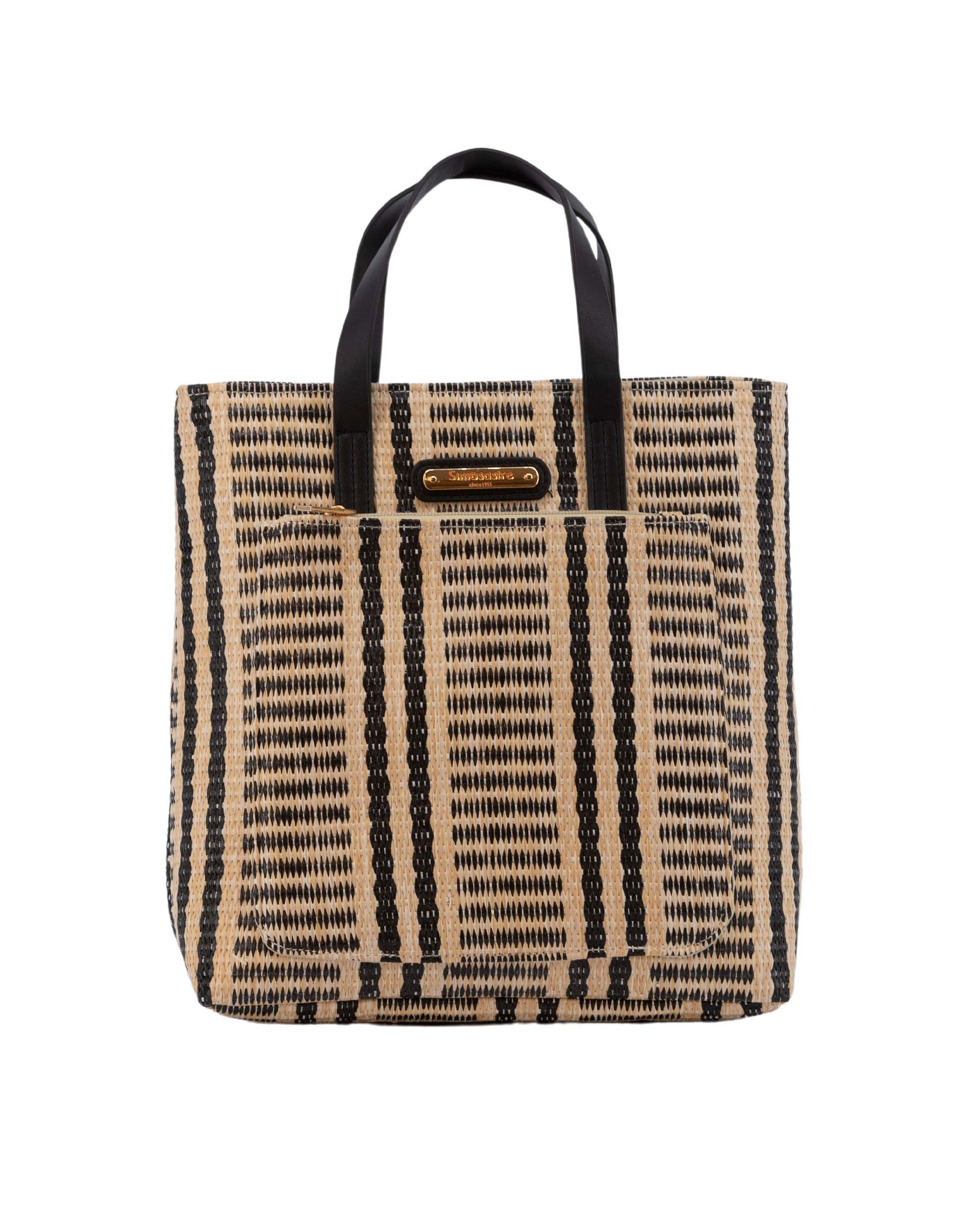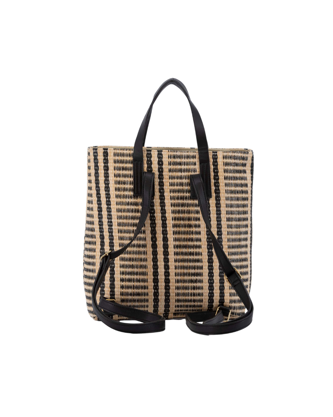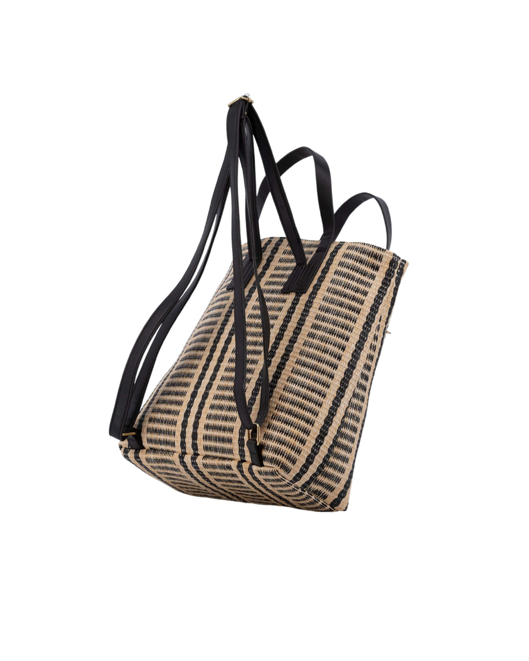 Mochila mediana fabricado en tejido de rafia con cierre cremallera y bolsillos interiores,
