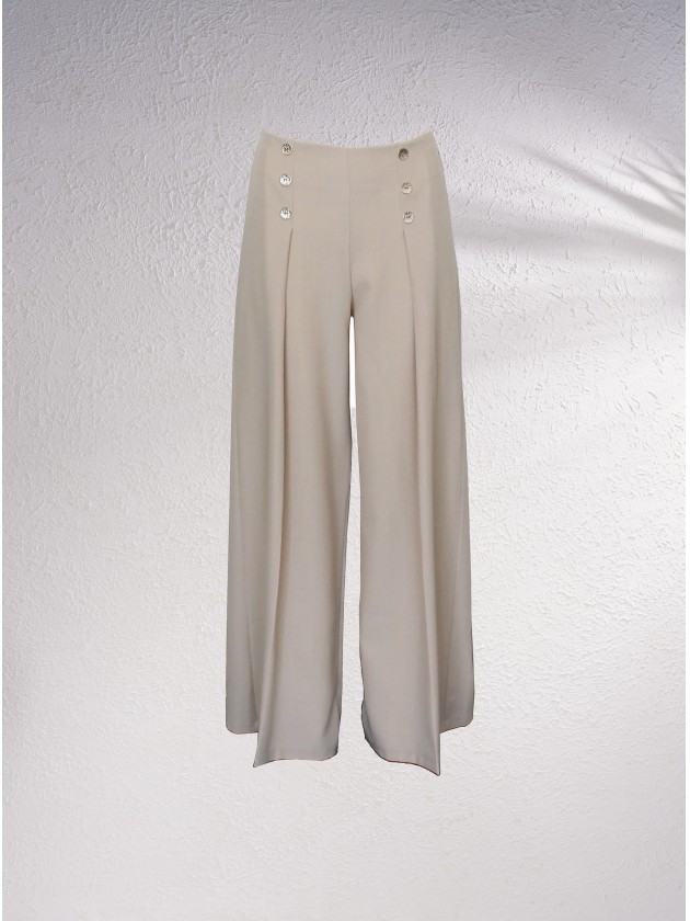 Doble fila de botones decorativos metálicos al frente, estilo marinero