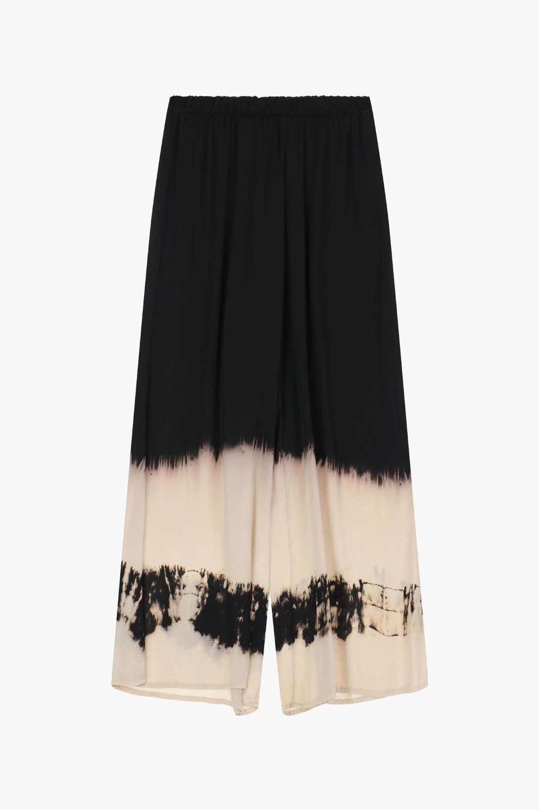 Una prenda de estilo amplio y relajado que destaca por su diseño fluido y cómodo, ideal para un look desenfadado pero con personalidad. Presenta un efecto degradado en tonos oscuros y claros que se fusionan de manera artística, recordando técnicas de teñido artesanal. El contraste de colores le da un aire bohemio y contemporáneo, perfecto para combinar tanto en outfits casuales como en propuestas más creativas. Su caída ligera y fresca lo convierte en una opción versátil para distintas ocasiones.