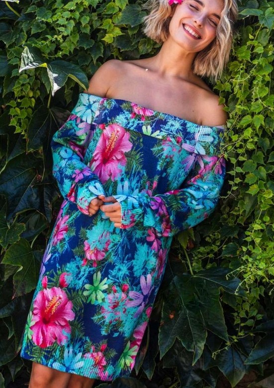 Este vestido tipo suéter tiene un corte recto, con largo a la altura de las rodillas y mangas largas. El detalle más destacado es su escote amplio , que deja los hombros al descubierto, dándole un aire sensual pero relajado. A pesar de su estilo suéter, el tejido parece ligero y elástico, ideal para entretiempo o noches frescas de verano. Da una sensación de abrigo sin ser pesado.Perfecto para quienes buscan una prenda cómoda pero con mucha personalidad. Ideal para combinar con sandalias, botines o incluso zapatillas, según el estilo deseado.